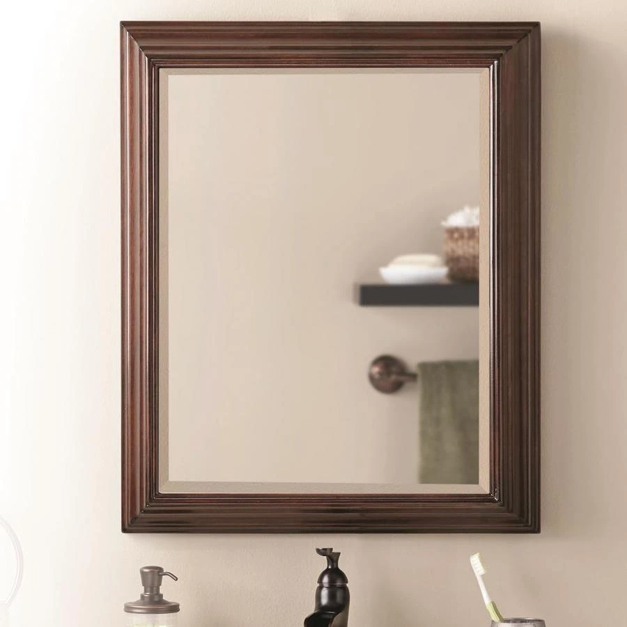Durably constructed with beveled mirror and wood frame in brown color finished