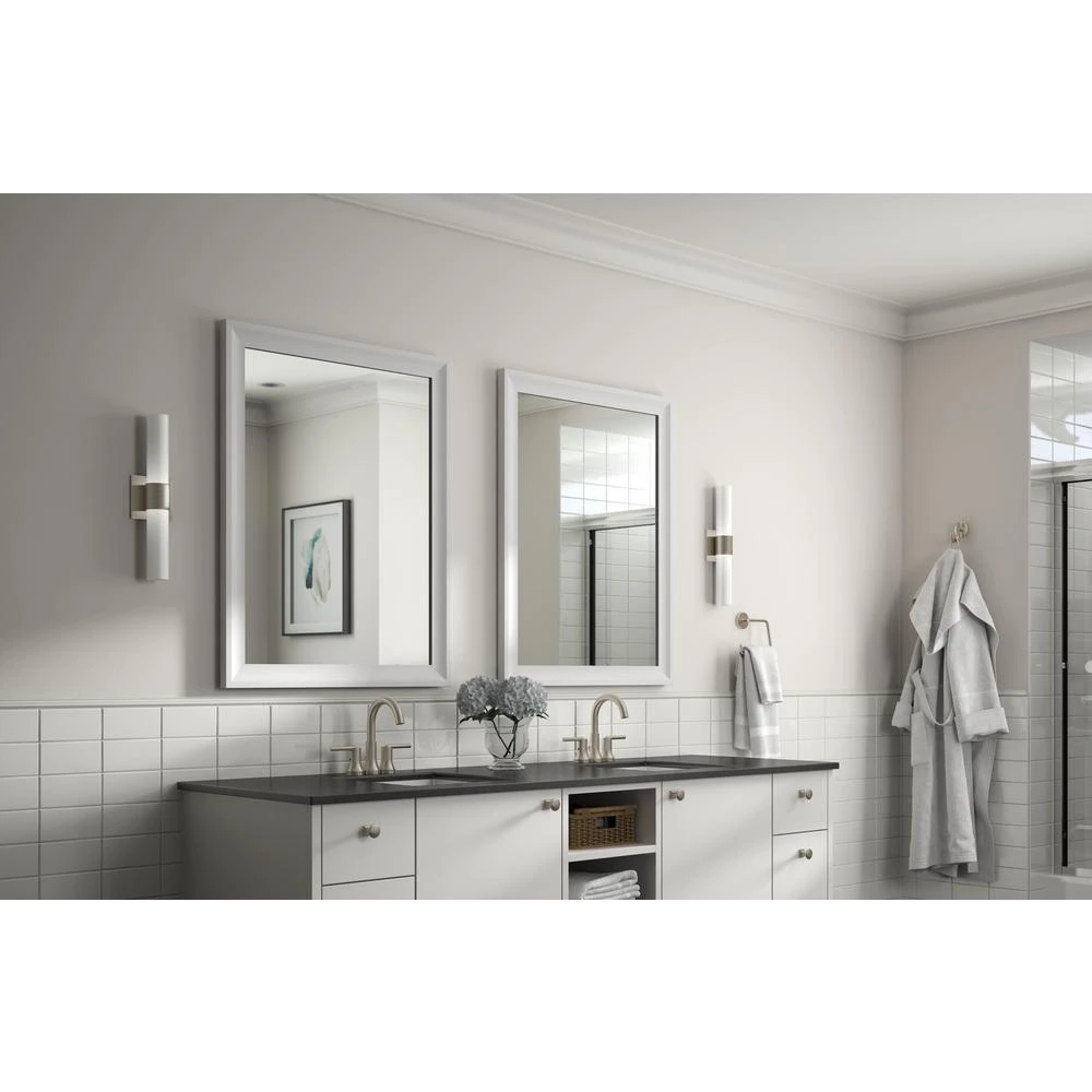 Customizing your bathroom mirror is easier and more affordable than ever with Delta Custom Reflections. Simply select your favorite size, shape, style and finish. Create the decorative vanity mirror you’ve always wanted designed by you. This Matte White frame has a matted finish with subtle texture that creates a simple yet classy design that can brighten up any space. The frame easily attaches to the standard glass mirror which features a polished edge and Safe-Break Backing a full coverage backing that keeps glass secure in case of breakage. The Easy-Cleat mounting system is easy-to-adjust and enables you to slide left or right to center your mirror. The flush mount hardware mounts your mirror close to your wall for a clean and simplified look. Customize, don’t compromise.