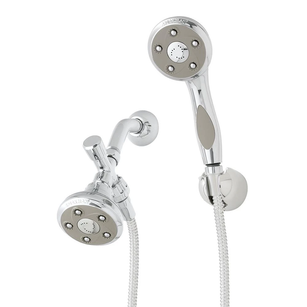 The Anystream Wall Mounted Combination Shower System features two individually adjustable massage showerheads with a universally classic look. Through Speakman’s patented Anystream 360° technology, one is able to enjoy the versatility of drenching gentle rain, full-body coverage, or pulsating central massage spray from either the fixed or Handshower by a simple rotation of the face plate. The solid brass shower diverter allows easy transition from use of the fixed showerhead or the Handshower. The Handshower, with its 60 in. no-tangle hose, hangs freely and can mount easily to the wall bracket. Integrating two showers into one efficient combination shower system, Speakman’s Anystream Massage Shower System combination units offer several advantages to your bathroom, including customizable usage for the entire family. Embodying a classically timeless design, this system perfectly complements any of Speakman’s bathroom faucets or fixture accessories sets.
