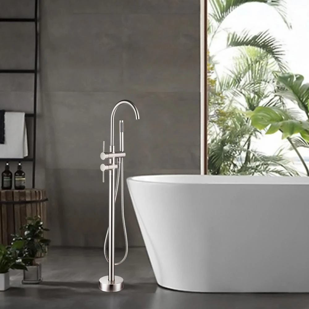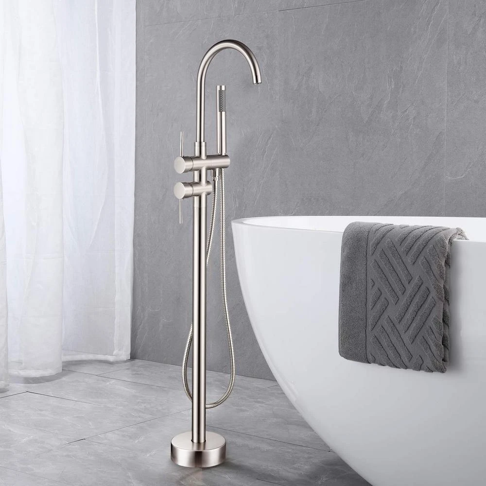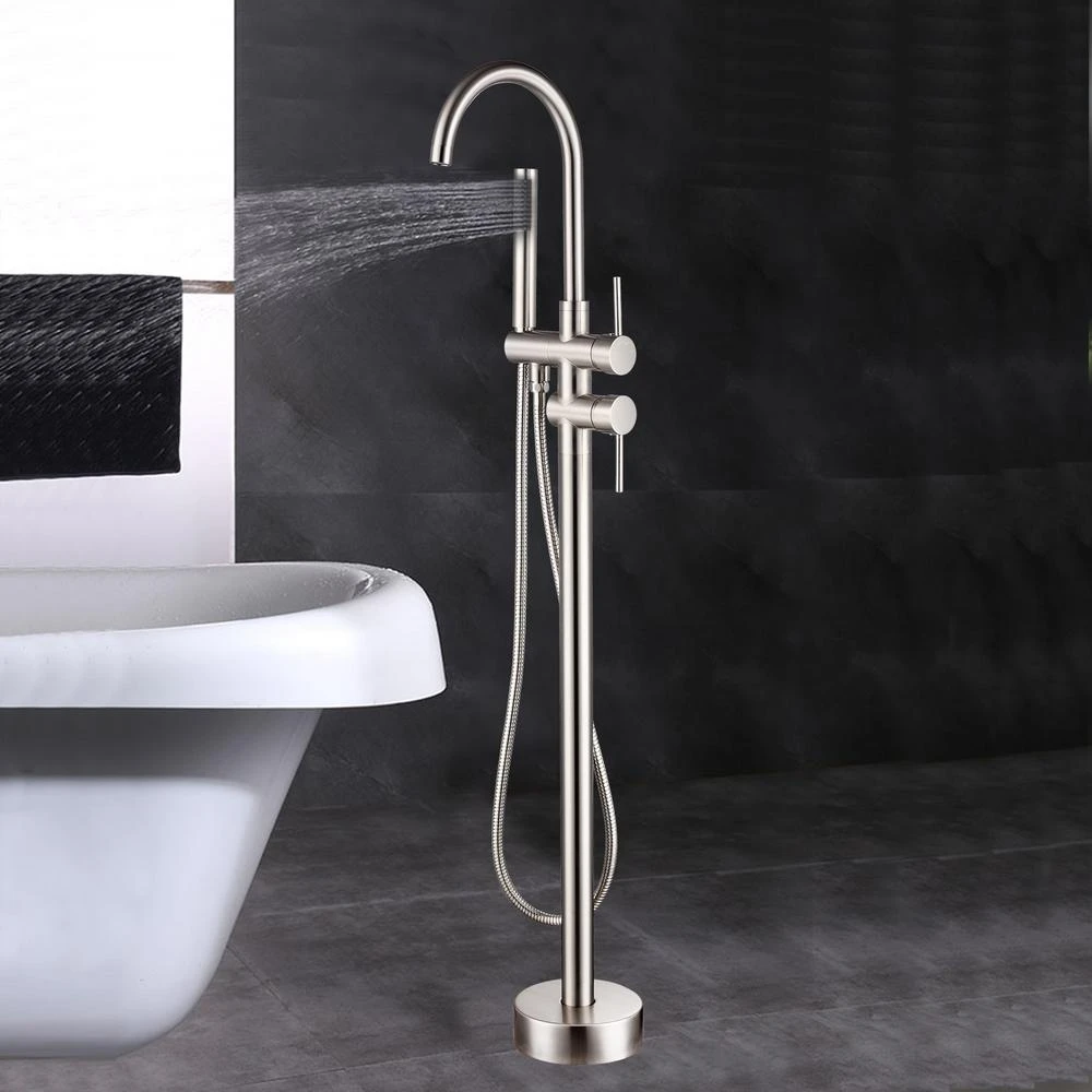 This Vanity Art Freestanding Faucet with Shower Head features a sleek, modern design to match your bath tub and the rest of the bath ensemble. The entire assembly has a tough metal construction, ensuring a long-lasting, maintenance free use. The set up is compatible with standard bathroom plumbing.