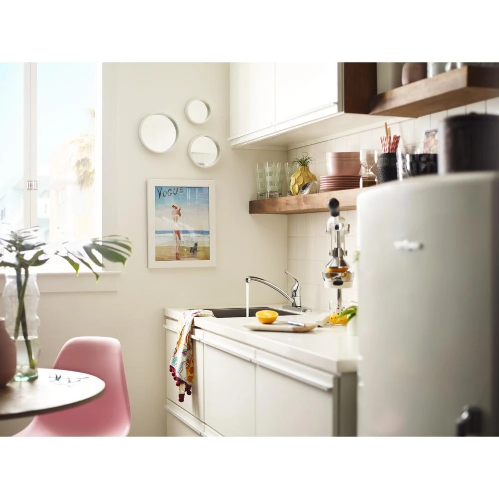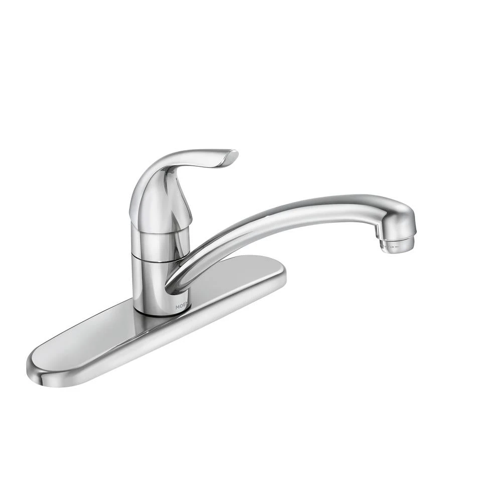 With its smooth curves and minimalistic design, the Adler one-handle faucet seamlessly blends with a variety of kitchen décor preferences. The one-handle lever makes it easy to adjust the water, and a matching side spray is included to make cleanup simple. Thanks to the new tool-free faucet installation method, Adler installs 40% faster than Moen faucets without the new installation option. Available in a Chrome finish.