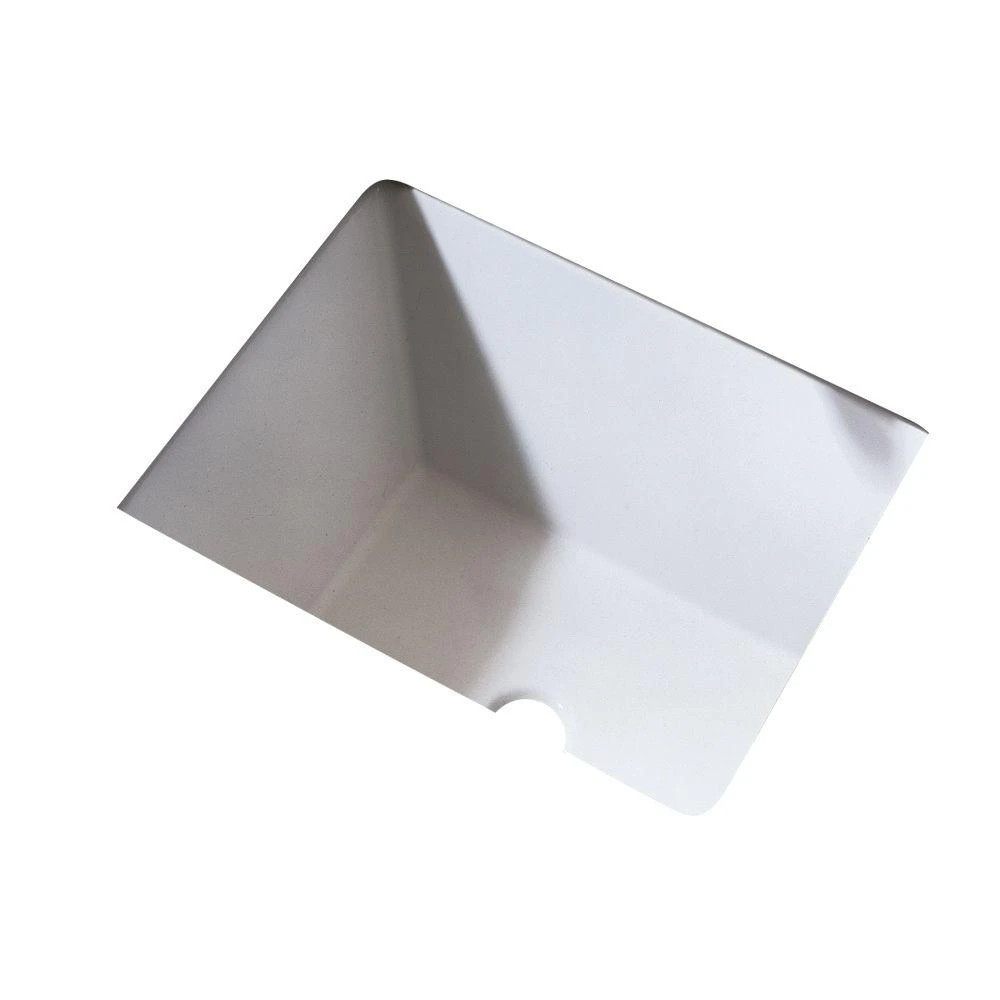 - Rectangular sink with tapered interior bowl offers a distinctive look