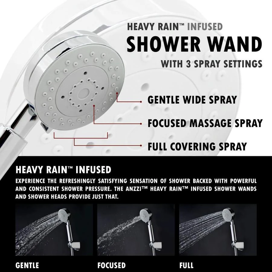 Your order will include one (1) ANZZI Lann full body shower panel, one (1) Heavy Rain swiveling shower head, three (3) fully directional Acu-Steam body massage jets, one (1) euro-grip free range hand sprayer, one (1) owner’s manual