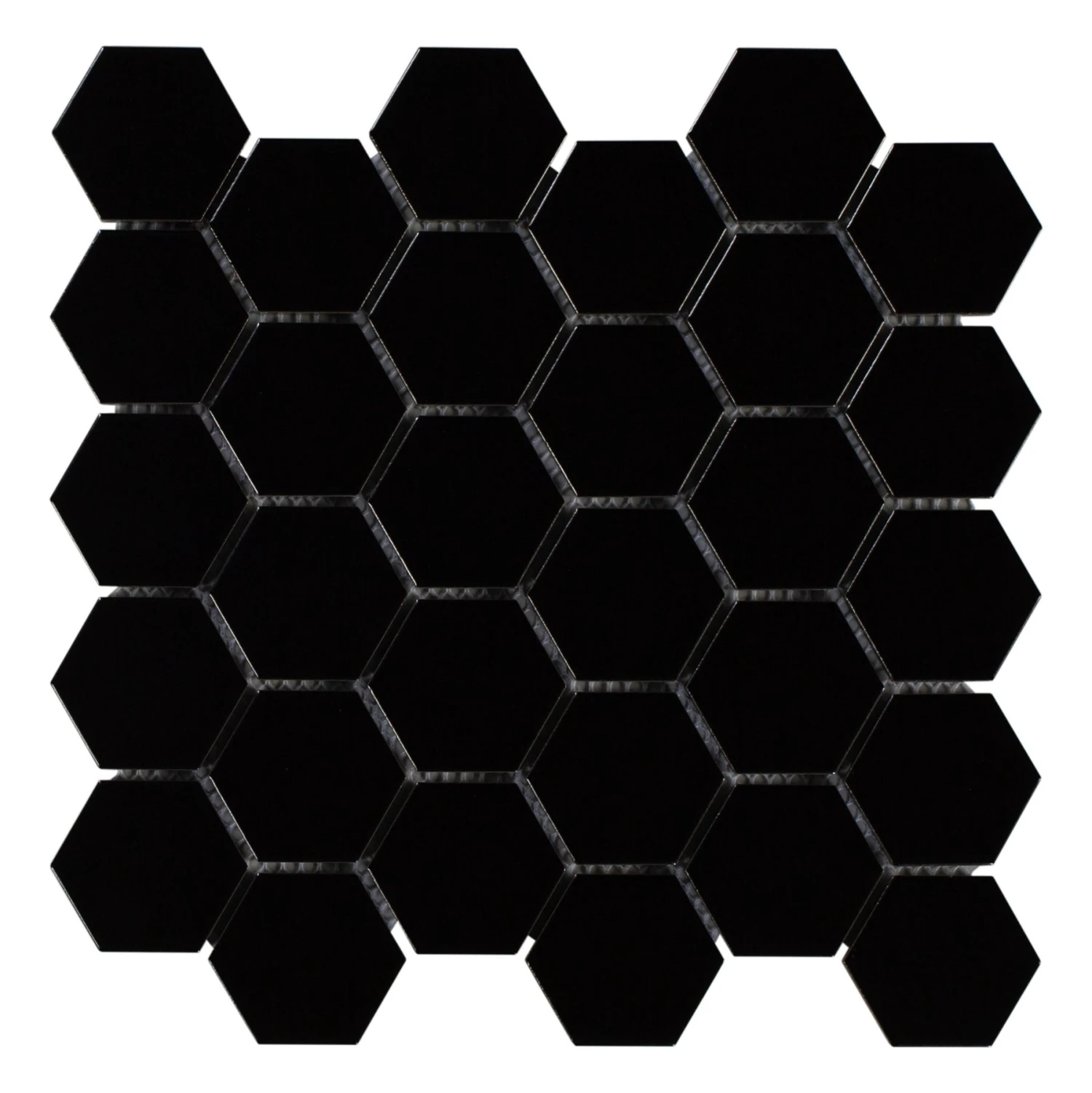 Whether you’re looking to create an accent piece or give a bigger area unique appeal, you can upgrade your space with Black Matte 2 in. Hexagon Porcelain Mosaic.