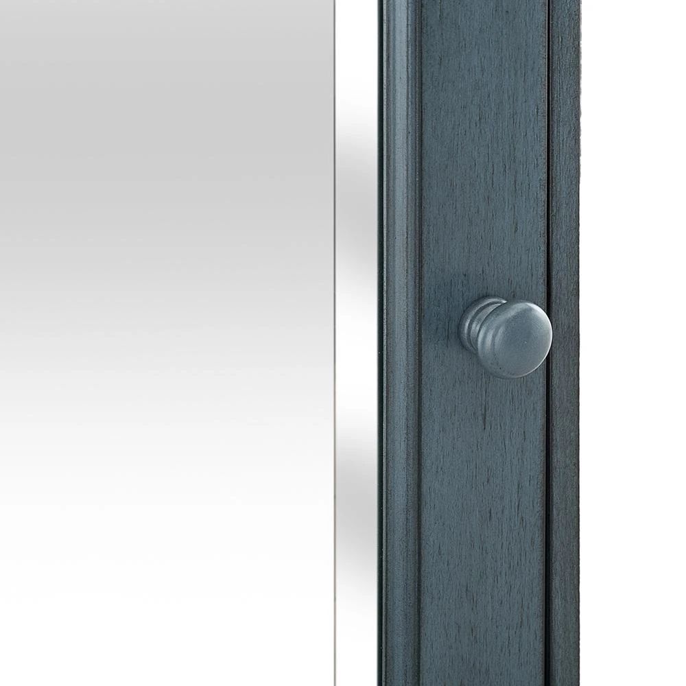 The Foremost Cottage 23-5/8 in. Surface-Mount Medicine Cabinet in Harbor Blue, with its beveled mirror and decorative wood frame, offers a classic look that can add elegance to your bathroom and enhance its overall appeal. Its harbor blue finish can accompany many different decorating schemes. 2-adjustable shelves provide ample space for a variety of container shapes and sizes, giving you versatile storage options. The cabinet can be easily installed with its Secure-Mount system.