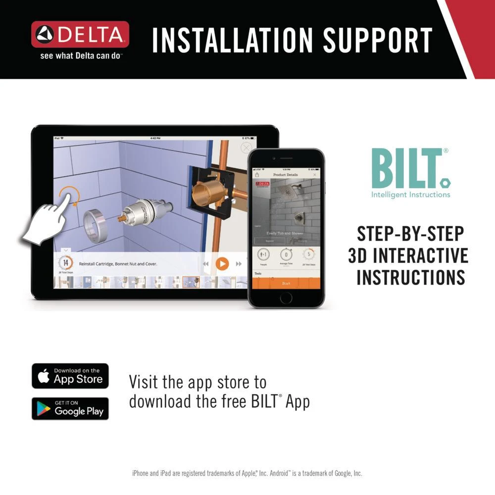Touch it on. Touch it off. Whether you have 2 full hands or 10 messy fingers, Delta Touch2O Technology helps keep your faucet clean, even when your hands aren’t. A simple touch anywhere on the spout or handle with your wrist or forearm activates the flow of water at the temperature where your handle is set. The Delta TempSense LED light changes color to alert you to the waters temperature and eliminate any possible surprises or discomfort. Delta MagnaTite Docking uses a powerful integrated magnet to pull your faucet spray wand precisely into place and hold it there so it stays docked when not in use. Delta ShieldSpray Technology cleans with laser-like precision while containing mess and splatter. A concentrated jet powers away stubborn messes while an innovative shield of water contains splatter and clears off the mess, so you can spend less time soaking, scrubbing and shirt swapping. Delta faucets with DIAMOND Seal Technology perform like new for life with a patented design which reduces leak points, is less hassle to install and lasts twice as long as the industry standard. Kitchen faucets with Touch-Clean Spray Holes allow you to easily wipe away calcium and lime build-up with the touch of a finger. You can install with confidence, knowing that Delta faucets are backed by our Lifetime Limited Warranty. Electronic parts are backed by our 5-year electronic parts warranty. Industry standard is based on ASME A112.18.1 of 500,000 cycles.