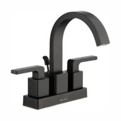 The Glacier Bay Farrington 4 in. Centerset 2-Handle Hi-Arc Bathroom Faucet in Matte Black features a unique ribbon water flow. WaterSense certified with a 1.2 GPM water flow and ceramic disc valves to reduce water use without sacrificing performance, this faucet exudes a timeless sophistication that will never go out of style. The high-arc spout allows for plenty of sink space. This faucet features the exclusive ClickInstall drain assembly for quick and easy installation.