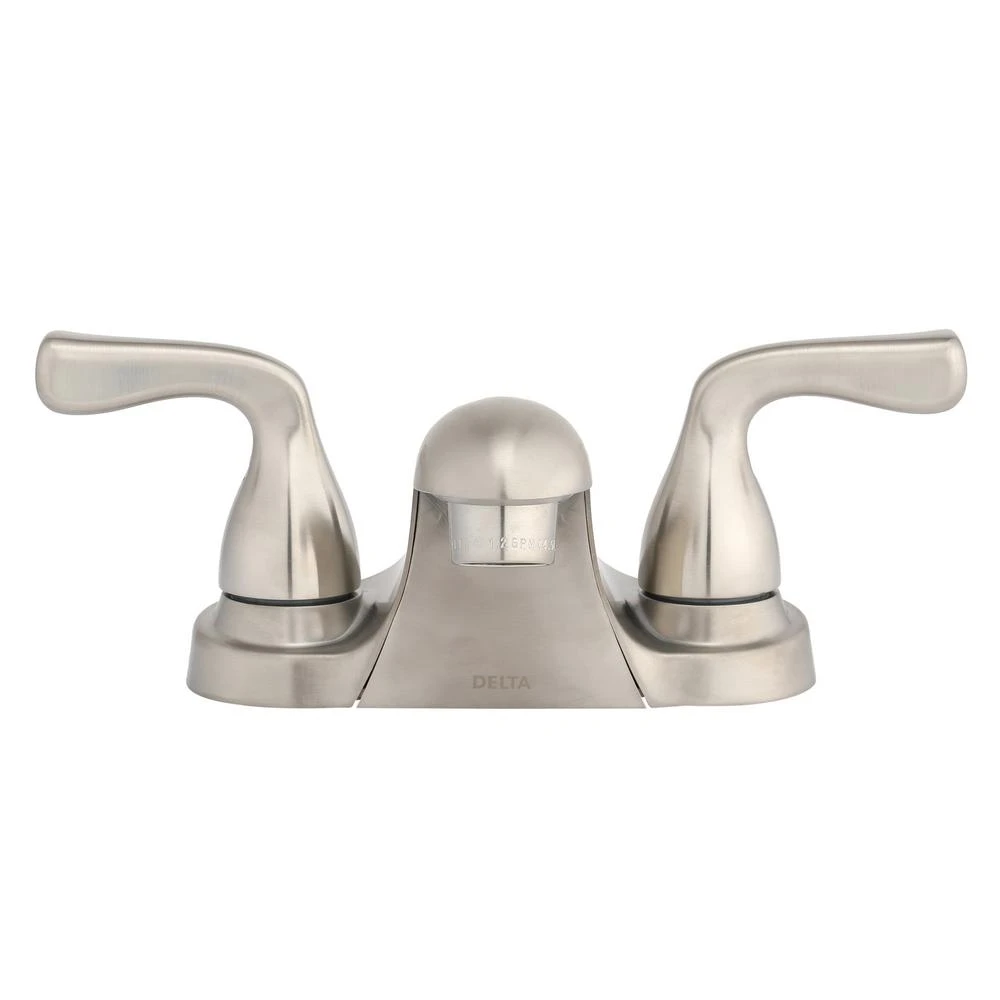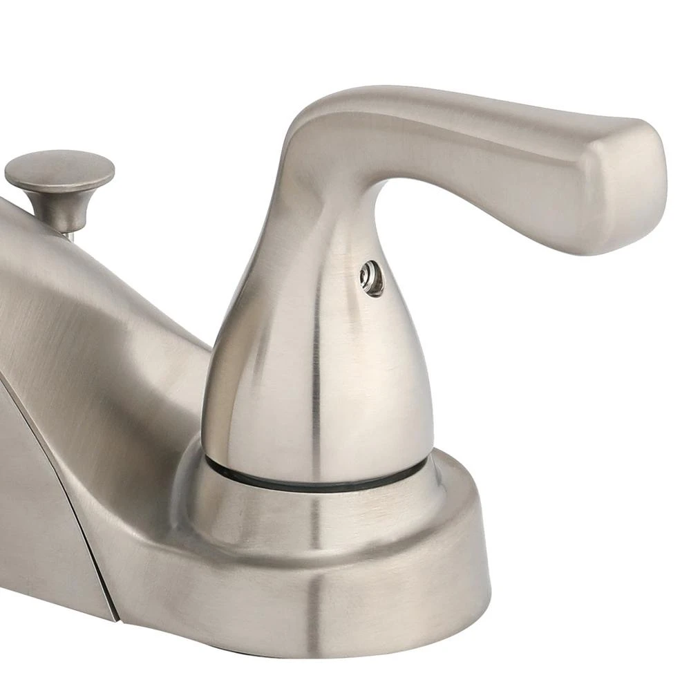 Give your bathroom a sophisticated upgrade with the Foundations 4 in. 2-Handle Bathroom Faucet in Brushed Nickel. This elegant, classic faucet features a deck-plate mounting design and is easily installed in 3 holes with 4 in. on-center spacing. The 2-handle lever design makes it easy to operate, while the low-arc spout leaves plenty of room for washing hands. Made for efficiency, this environmentally friendly faucet is also WaterSense certified to conserve water in a sustainable, functional style.