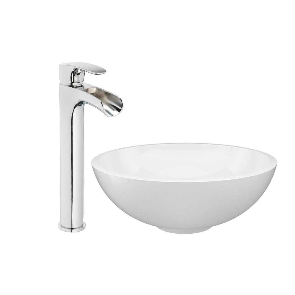 Perfectly balanced atop its base, this Solid Surface sink appears to float above the counter. Paired with the vessel filler faucet completes this look. Made from SCULPTED STONE this sink is easy to clean and stain resistant.