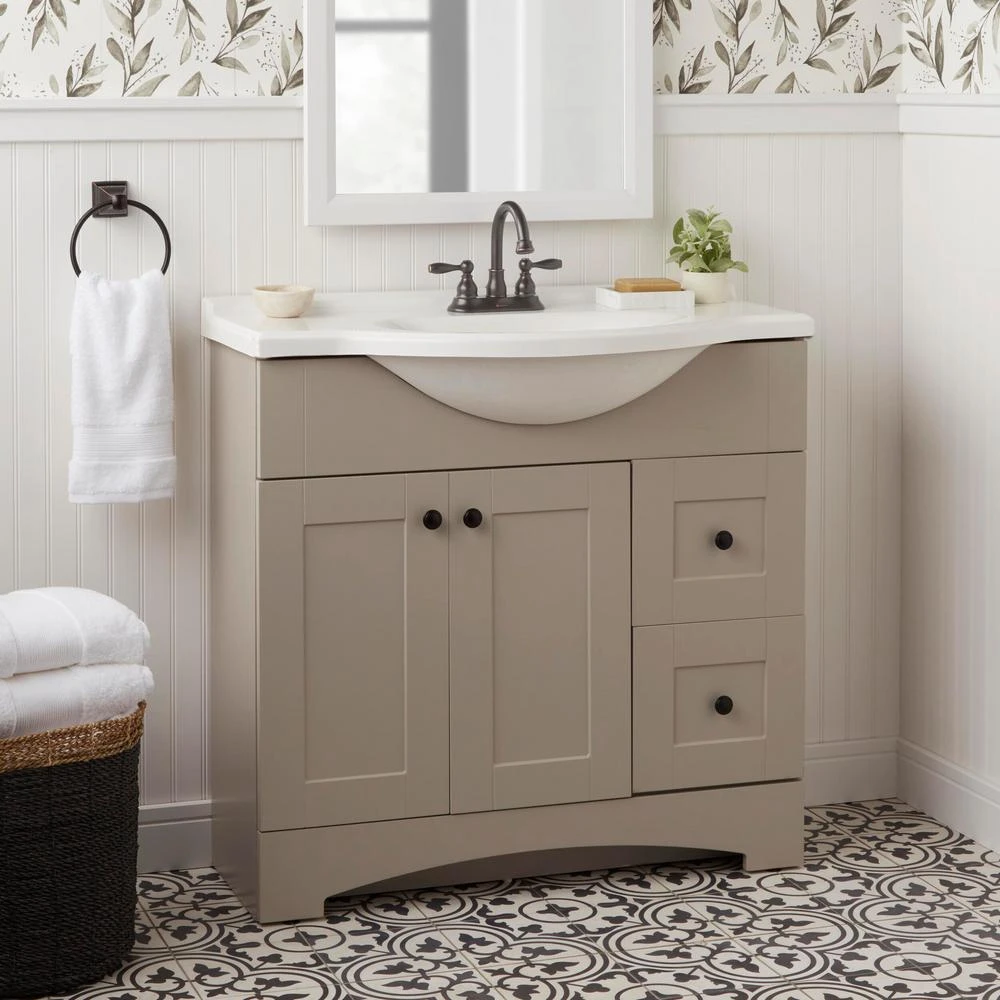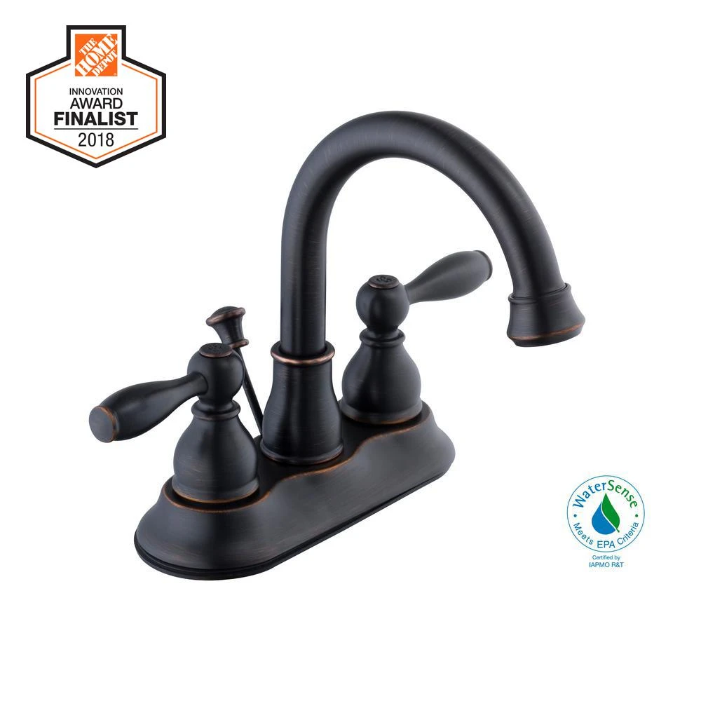 The Glacier Bay Mandouri 4 in. 2-Handle High-Arc Bathroom Faucet in Bronze offers a beautiful traditional look for your bathroom. This faucet features beautiful handles and an elegant high arc spout. With a water flow of 1.2 GPM, this faucet is WaterSense certified. The ceramic disc valves help prevent drips to further conserve water. This faucet features the Glacier Bay exclusive ClickInstall drain assembly for quick and simple installation. Pair this faucet with other items from the Mandouri Collection for a complete look for your bathroom.