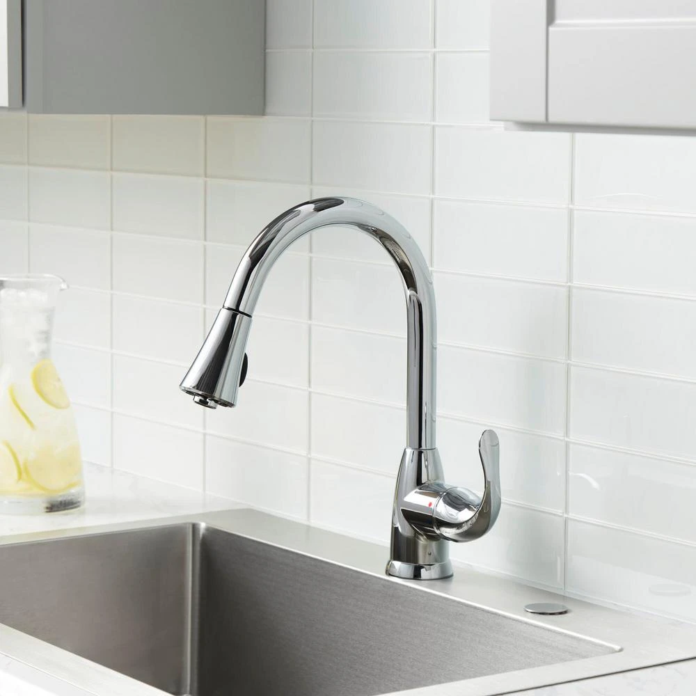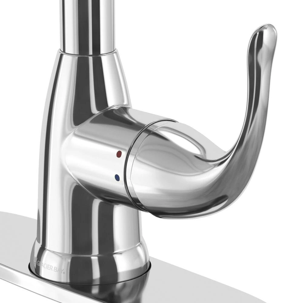 The Glacier Bay Market Single-Handle Pull-Down Sprayer Kitchen Faucet in Chrome will add style and functionality to a wide variety of kitchen decor. Easy-to-use with a single handle design, this faucet has a convenient pull-down spray wand with 2-spray modes and a long reach that makes easy work of kitchen tasks. The pull-down sprayer features an aerated spray and a new TurboSpray that is exclusive to Glacier Bay. The TurboSpray from Glacier Bay provides a stronger spray pattern than your standard pull-down faucet. The ceramic disc cartridge provides drip free performance. This kitchen faucet also includes the exclusive Fast Mount mounting system to make installation quicker and easier.