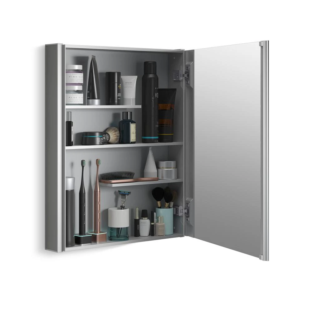 Maximize your bathroom storage with the Maxstow medicine cabinet. Staggered shelving holds tall and short items with no wasted space, fitting everything you need and keeping clutter off your countertop. The slim 3-1/2 in. -deep design provides the same internal storage space as traditional 5 in. -deep cabinets. Installation is fast and easy simply screw to the wall, right out of the box.