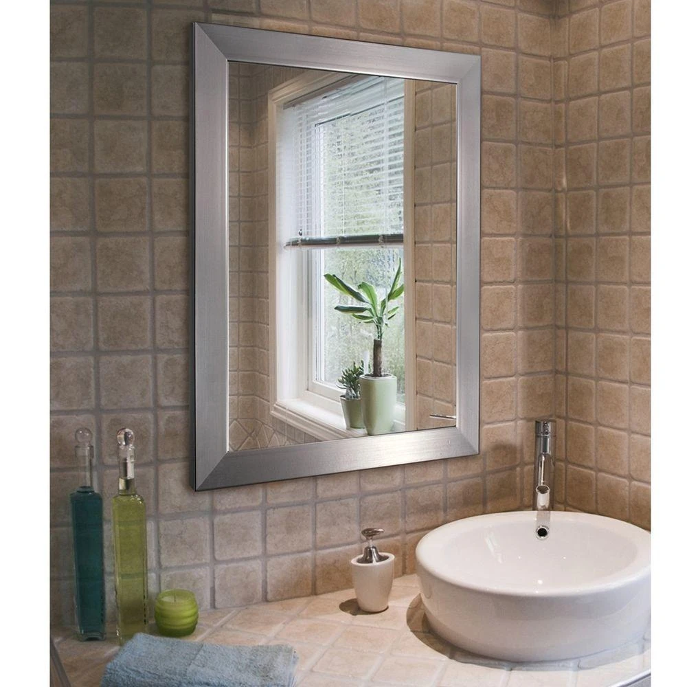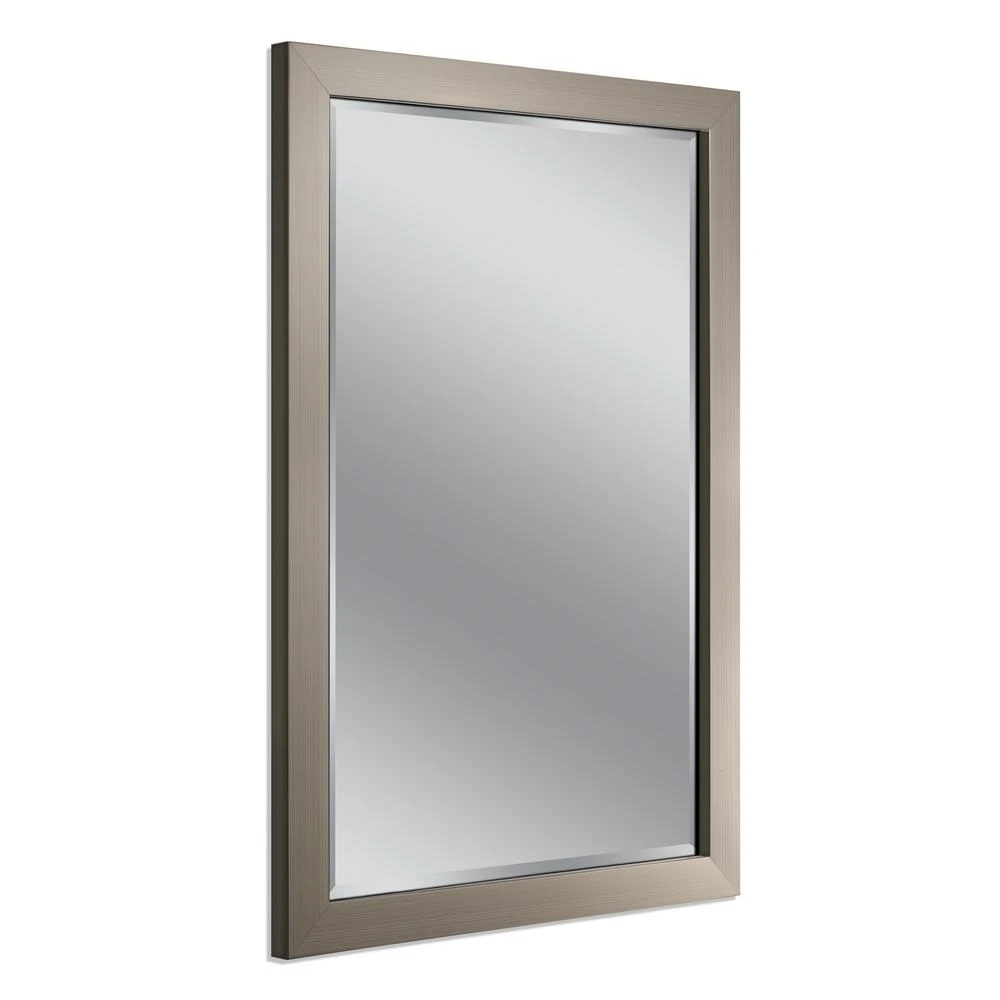 Add a striking focal point to any room with the Modern Mirror in Brushed Nickel from Deco Mirror. A high-polished brushed nickel frame complements most popular finishes, designed with a heavy 2 in. x 2 in. frame profile to create a contemporary, industrial look. The mirror is designed with beveled glass and can be hung either vertically or horizontally for flexible styling.