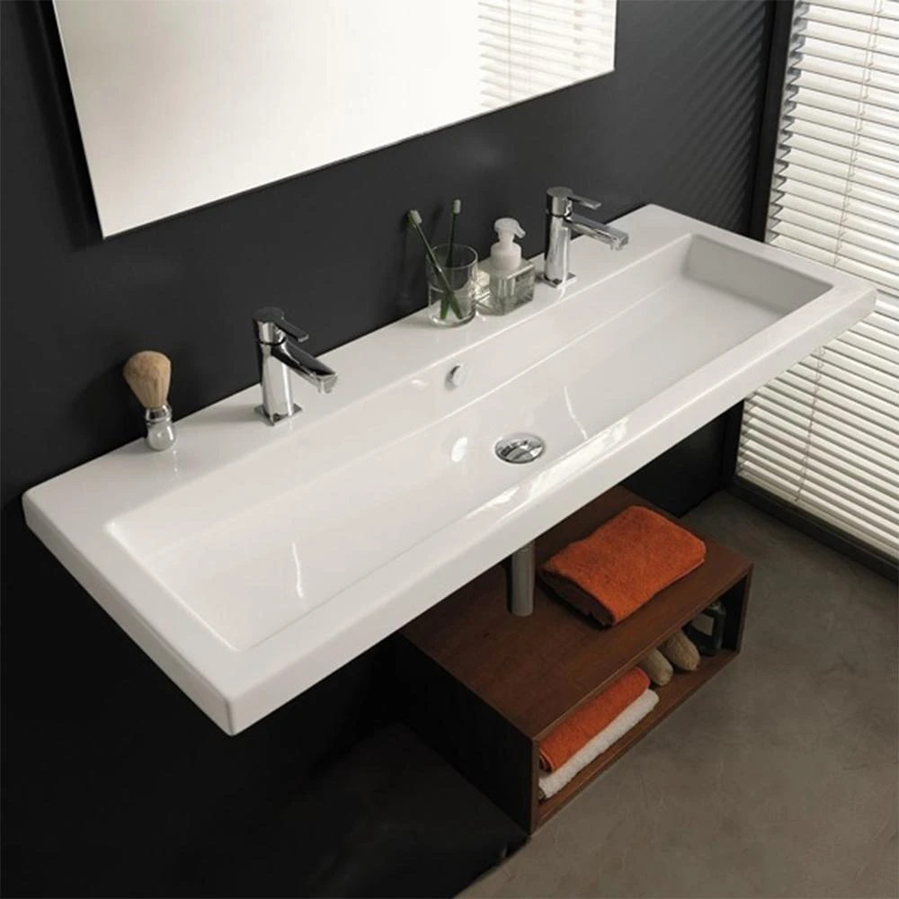 Rectangle white bathroom sink made from high quality ceramic. Modern style sink with drop-in or wall mount application. Sink has 1 pre-drilled faucet hole. Part of the Tecla Cangas collection. Made in Italy.