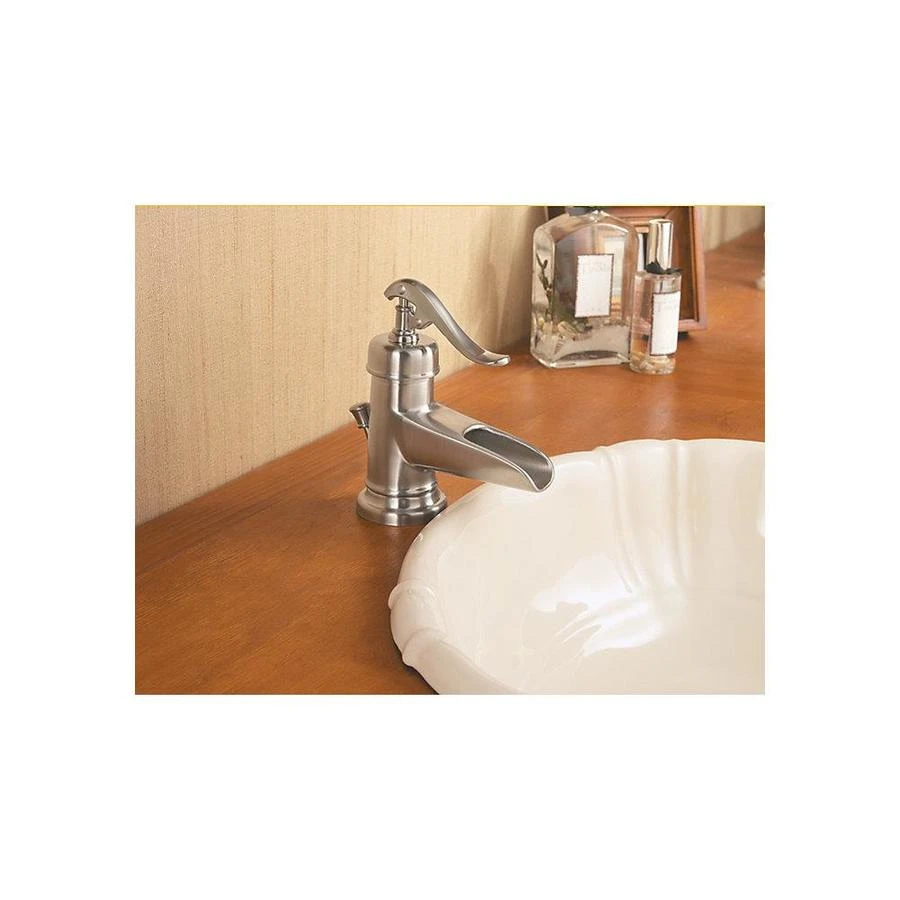 Waterfall spout delivers a gentle cascade and displays the natural beauty of flowing water