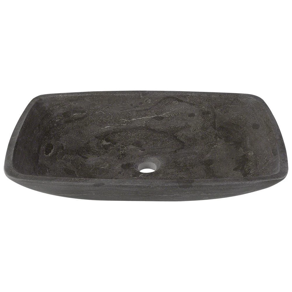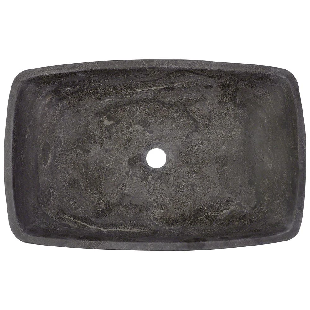 The P868 is chiseled into a beautiful basin from a large block of natural limestone. It is a very exclusive hand-honed stone vessel, as limestone is only occasionally used in the sink industry. Its wide flat-bottomed trough gives way to its lower corners which sweep upwards and out to form gracefully rounded top corners and sides. Though generally rectangular in shape, the slow curves at each end create an inverted arch profile when viewed from the front. The deep gray-colored stone is buffed to a smooth, durable, matte finish. Overall the sink rises to a 4-7/8 in. height and measures 23-3/4 in. x 15-1/8 in. with a 3/4 in. thickness. Its inner depth is 3-1/2 in. with a centerset drain. As always, our stone sinks are covered under our limited lifetime warranty.