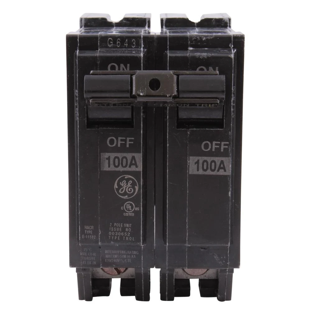 The GE Q-Line 100 Amp 2 in. Double-Pole Circuit Breaker is a box-type terminal that is compatible with PowerMark Gold load centers. This breaker meets NEMA standards and is ANSI certified and CSA and UL listed. The unit features tin-plated copper stabs to create reliable, permanent and corrosion-resistant connections with a calibration screw that is cemented to prevent shifting.