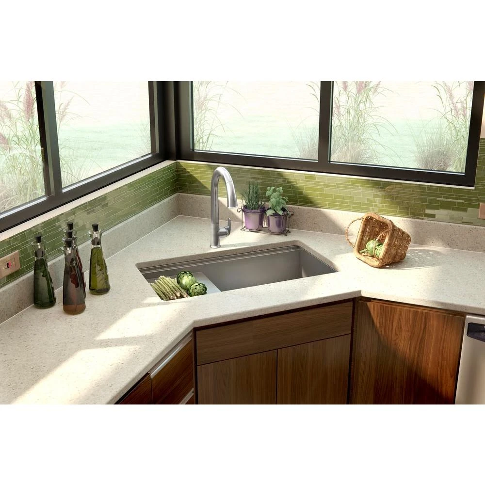 Take touchless to a whole new level of convenience. The Sensate touchless pull down kitchen faucet frees your hands so you can speed through cooking and cleanup tasks while enjoying a cleaner, more hygienic kitchen environment. Sensate’s intuitive Response technology is in tune with your every move: a simple wave of your hand–or an object such as a pan or utensil turns it on or off. The faucet’s sensor is precision-designed to provide reliable operation every time and to prevent false activations when you’re working in the sink area. DockNetik, KOHLER’s new docking system, secures the pull-down spray head to the spout using magnetic force.