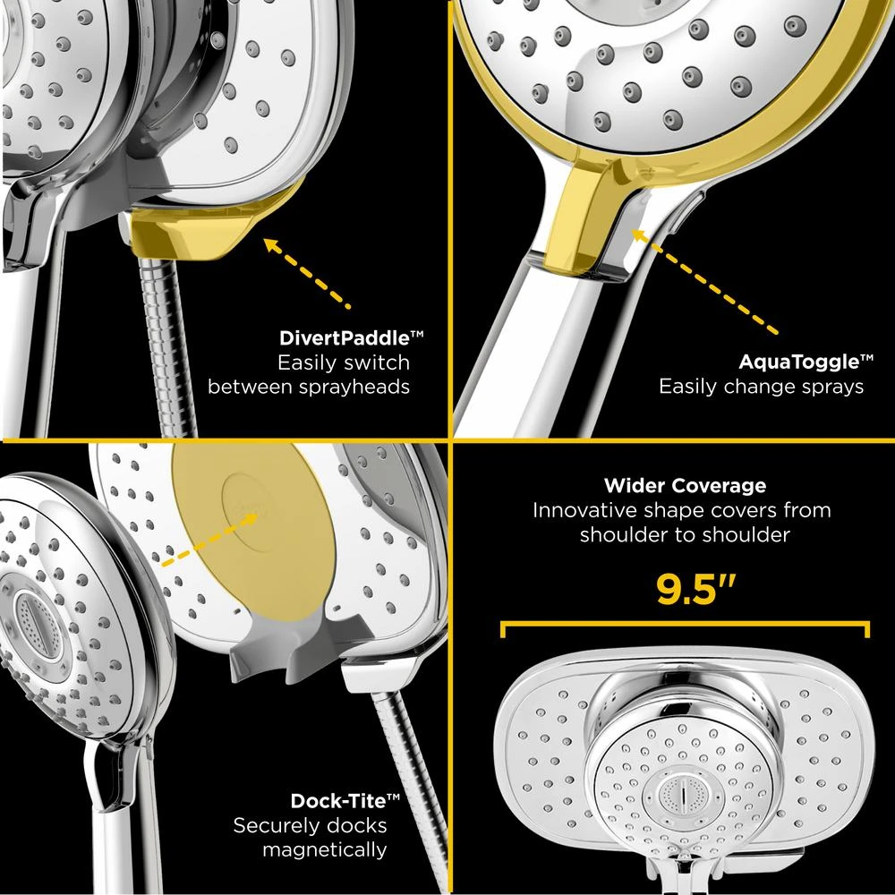 - 2-in-1 design, with a wide shower head and hand shower combination