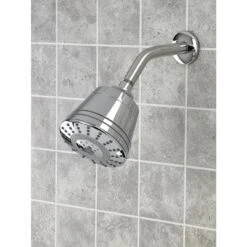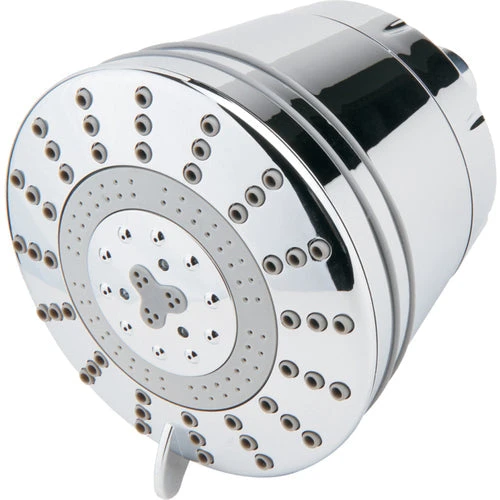 5 inch diameter filtered showerhead with self-cleaning nozzles minimize mineral and hard water build up