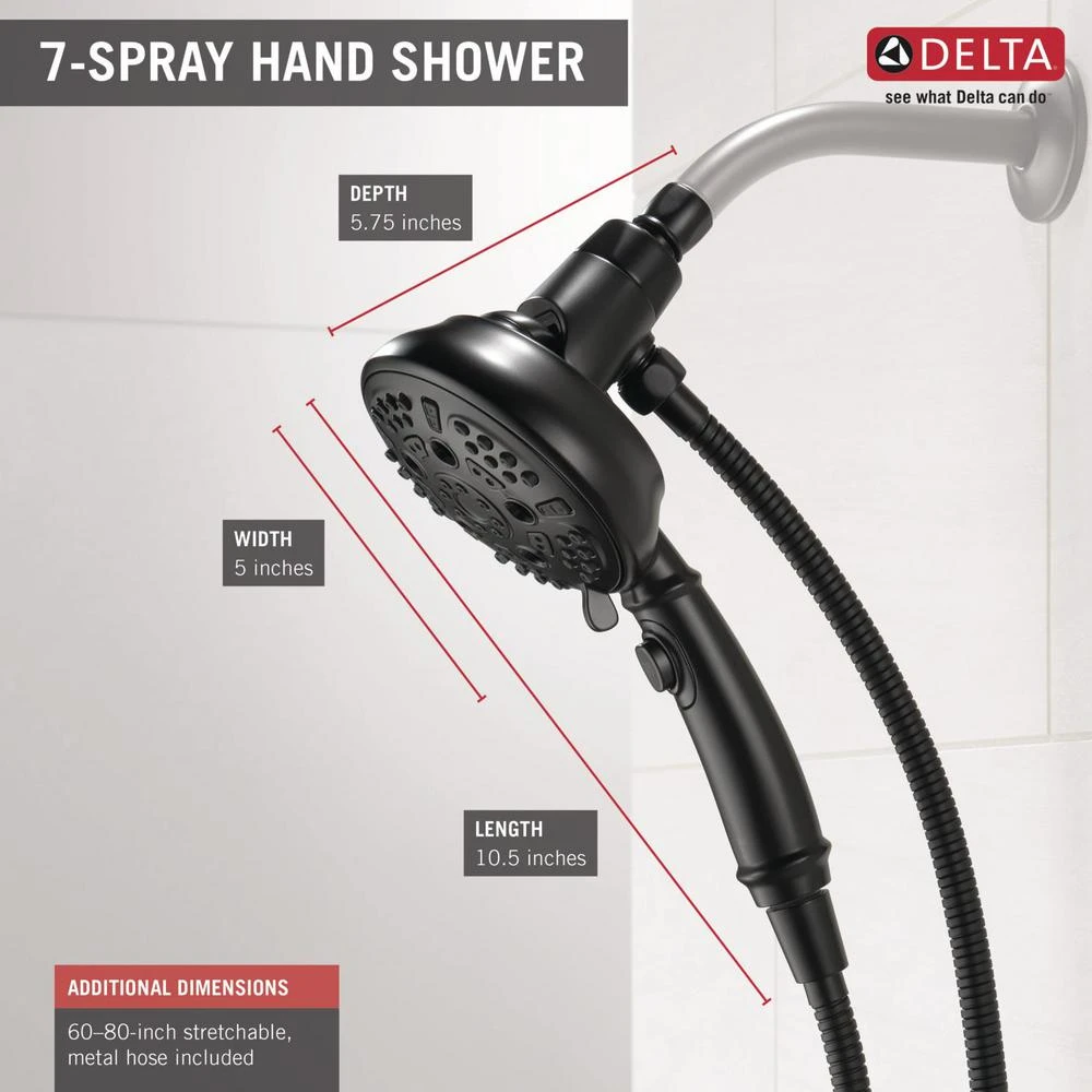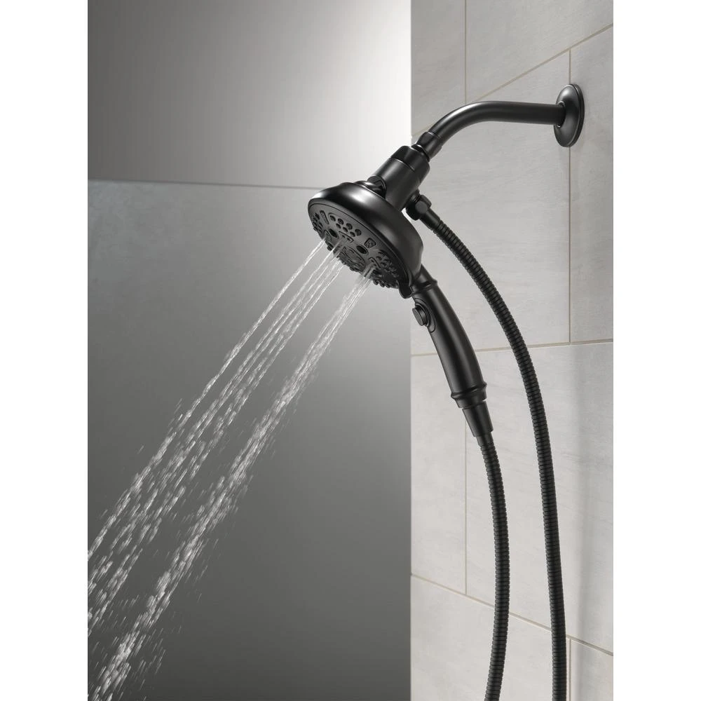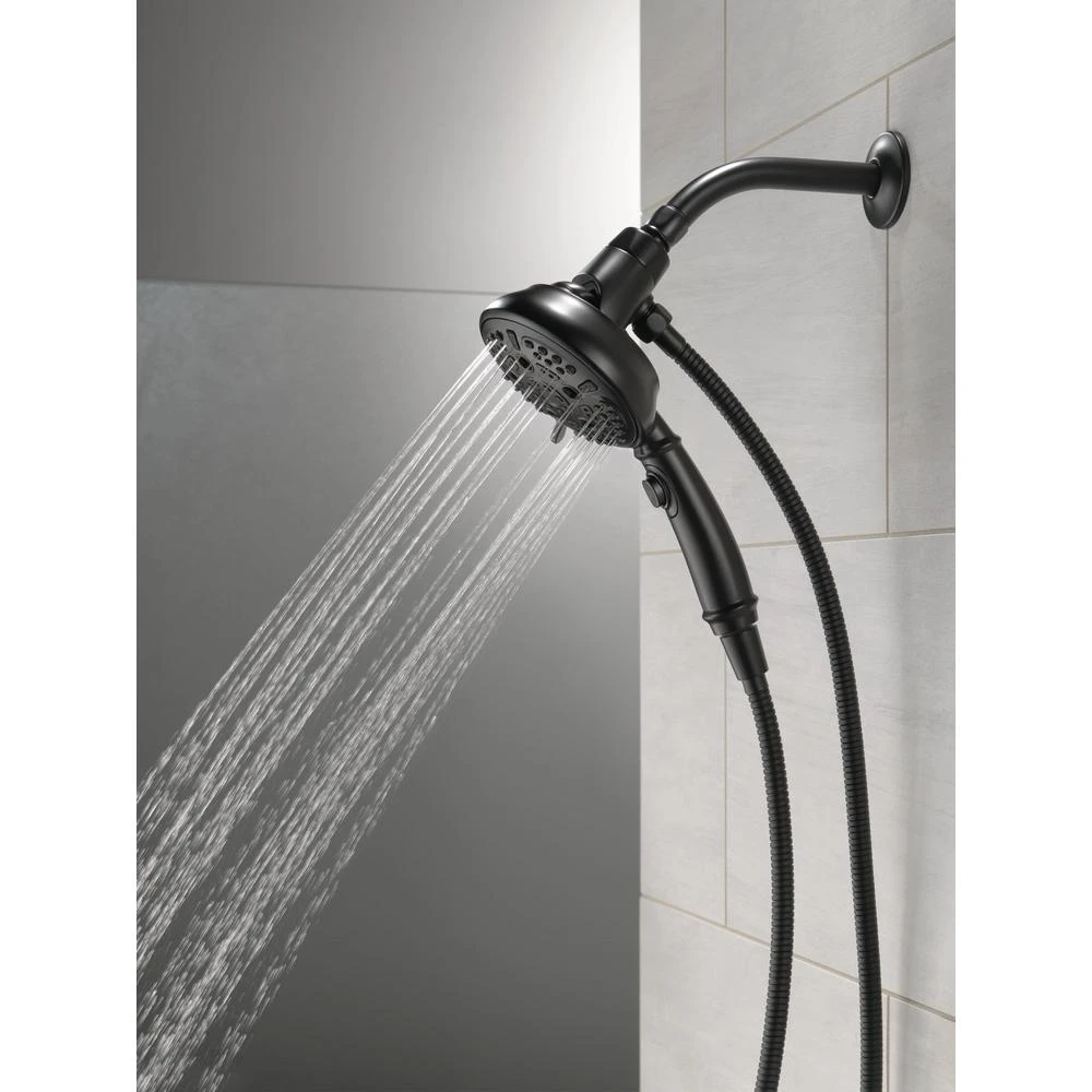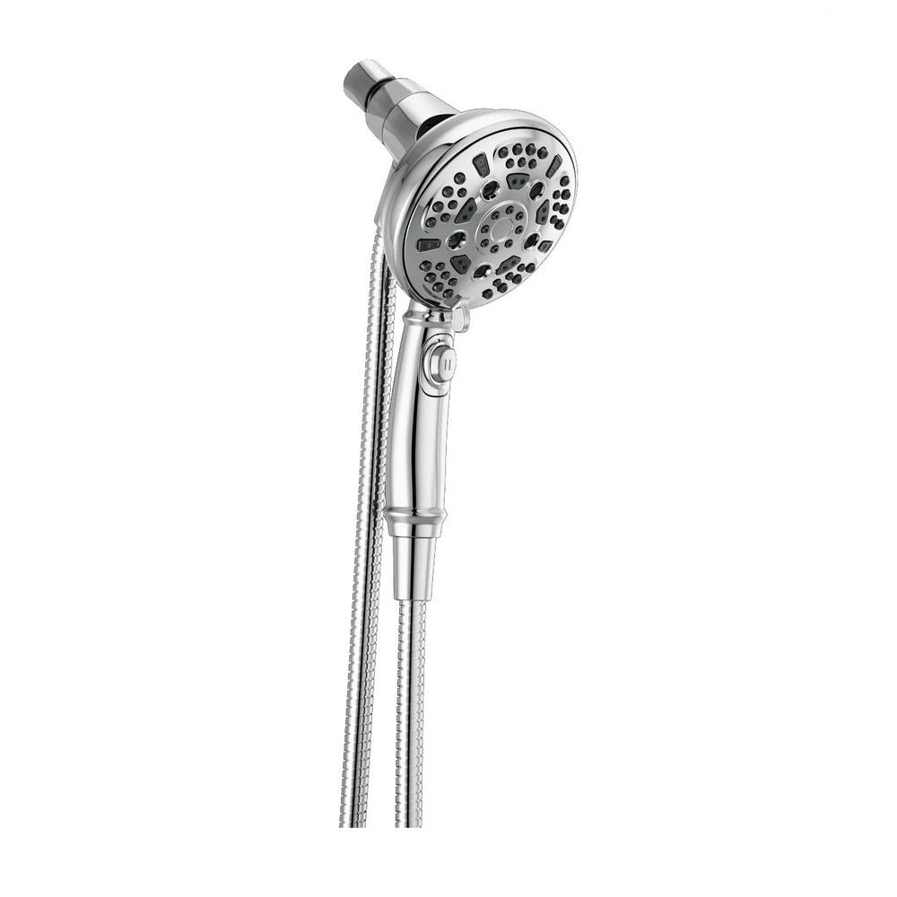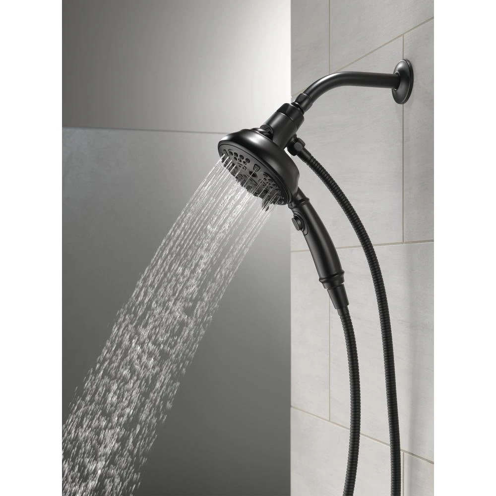 Delta Sure Dock Hand Showers bring reliable docking within reach. A sturdy hook on the back of the shower head ensures it mounts securely every time. The location of the mount on the back of the shower head lowers the handle to a more easily-accessible height, so you can remove, use and redock your hand shower with ease. Delta H2Okinetic Power Drench Showers look different because they are different. H2Okinetic showers are powered by an innovative technology that sculpts the water into a unique wave pattern, giving you the feeling of more water without using more water and creating a shower with more warmth, coverage and intensity. So go ahead and indulge, because now you can enjoy the feeling of more water without using more water. While other products may gather unsightly mineral build-up over time, Delta soft rubber Touch-Clean spray holes allow any mineral residue to simply be wiped away for an instantly refreshed look with no need for soaking or the aid of chemical cleaners. The pause setting gives you ample space for shaving, lathering and other shower tasks, without worrying about overspray or water waste. This spray setting helps you conserve water, so you can worry less about depleting your supply of hot water – and you help the environment too. Delta Water Sense labeled faucets, showers and toilets use at least 20% less water than the industry standard saving you money without compromising performance.