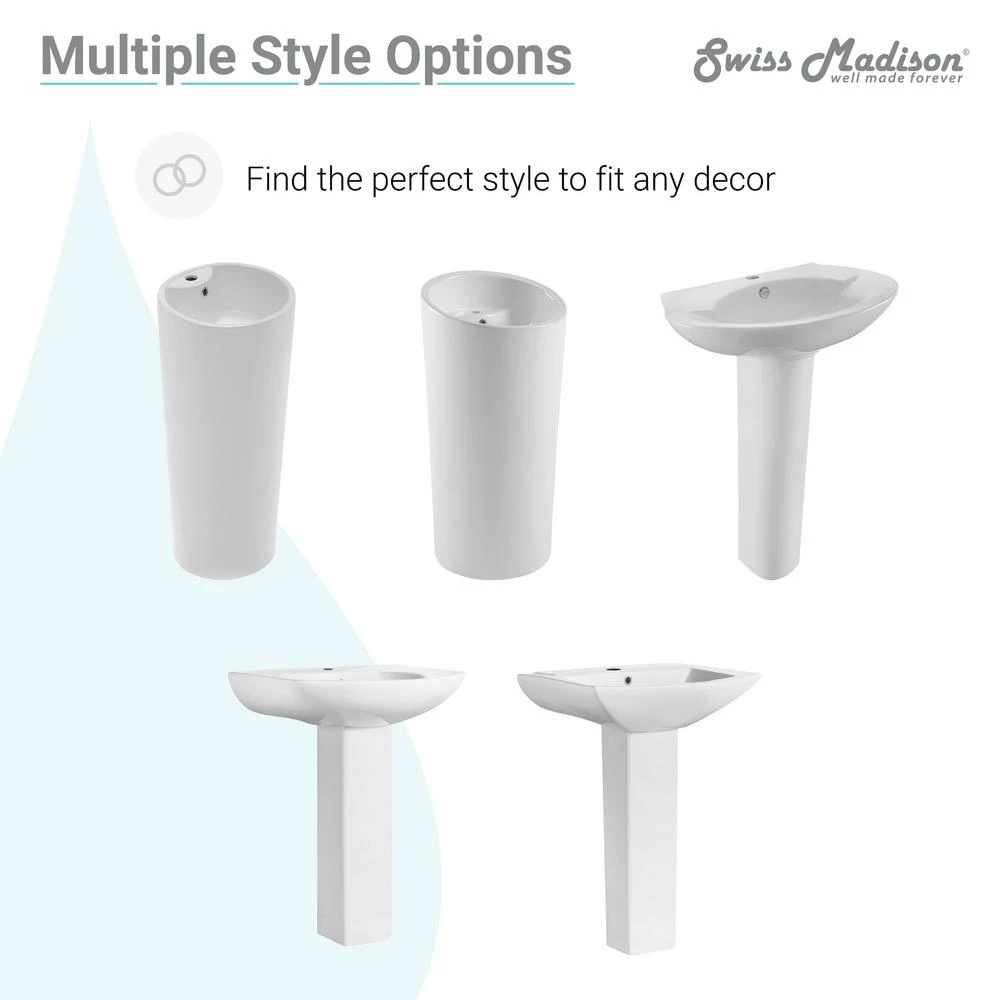 The solid freestanding 1-piece design of Swiss Madison’s Monaco pedestal sink is a modern look that brings a unique flair to any bathroom setting. The sink is constructed of durable ceramic for a long-lasting fitting. It’s seamless finish provides a smooth surface for superior shine and easy cleaning.