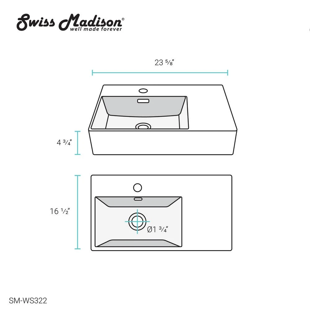 - Easy wall hung installation with the option to be installed as a vessel sink.
