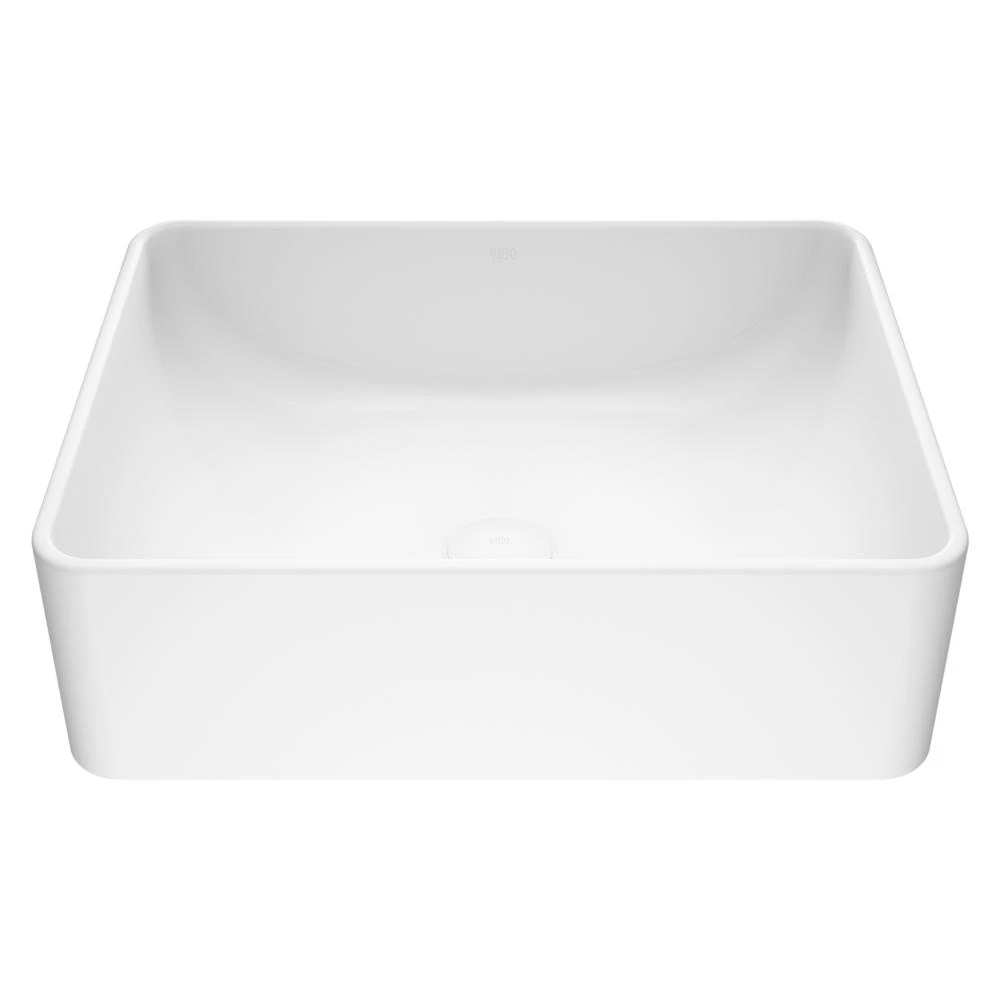 Soft interior slopes contrasted with sleek exterior lines make the VIGO Amaryllis Matte StoneTM Vessel Bathroom Sink a modern statement piece in any traditional, transitional, or contemporary bathroom. Its surface is scratch and fade resistant and is easy to keep clean with the included buffing circle. Built from solid core Matte StoneTM material, the Amaryllis Vessel Sink maintains its strength through non-porous, stain resistant construction.