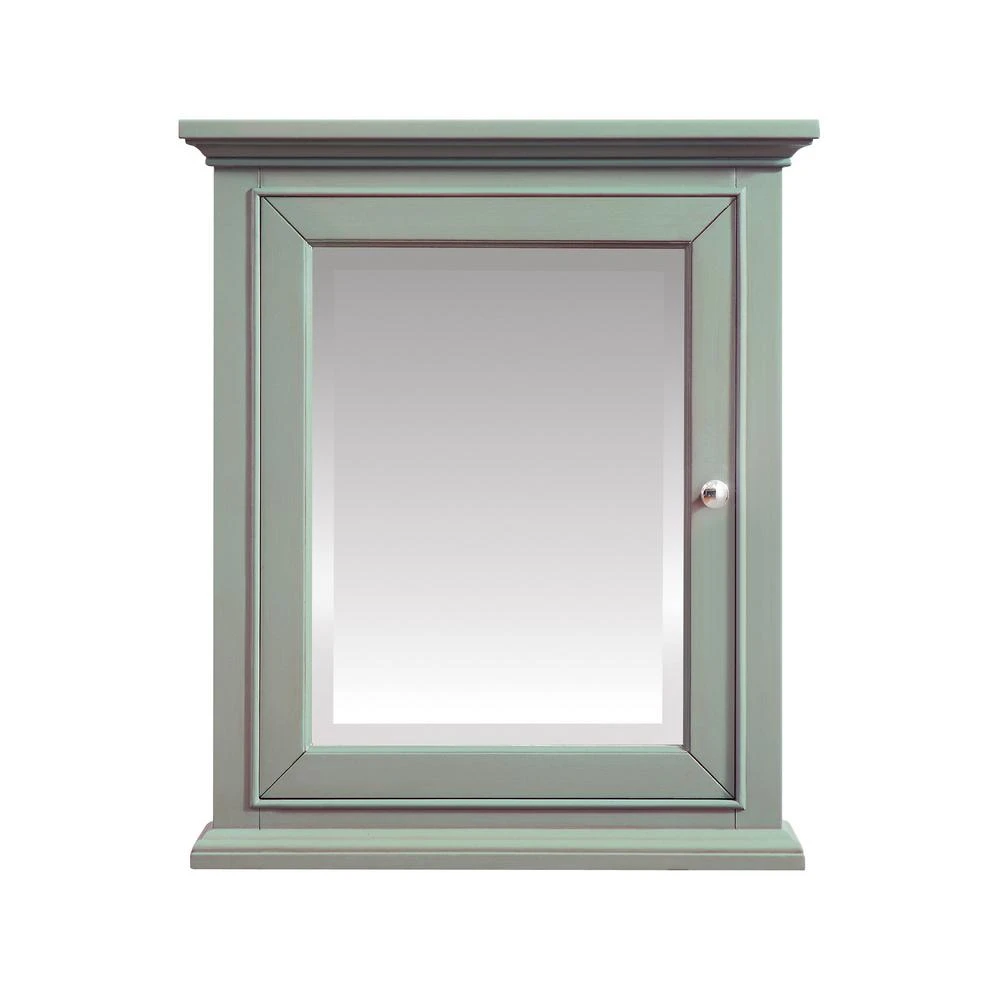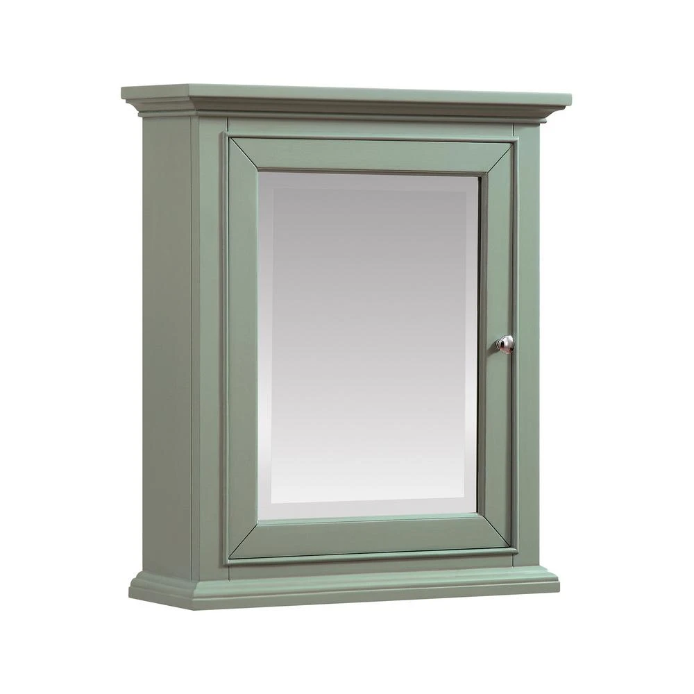 The Windlowe Collection features classical design enhanced by a soothing Sea Green finish, creating an aesthetic that mixes flair and function. The Windlowe 24 W x 32 H in. solid wood framed mirror cabinet features a beveled edge and mounting hardware for easy installation. The mirror cabinet hangs vertically.