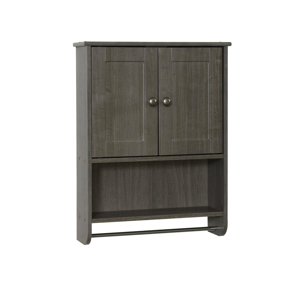 The Wall Cabinet in Driftwood Gray offers a beautiful wall-mounted storage solution for any bathroom. With concealed storage behind doors, as well as an open shelf and a towel bar, this wall cabinet is functional as well as attractive. The space saving cabinet is easy to assemble and install.